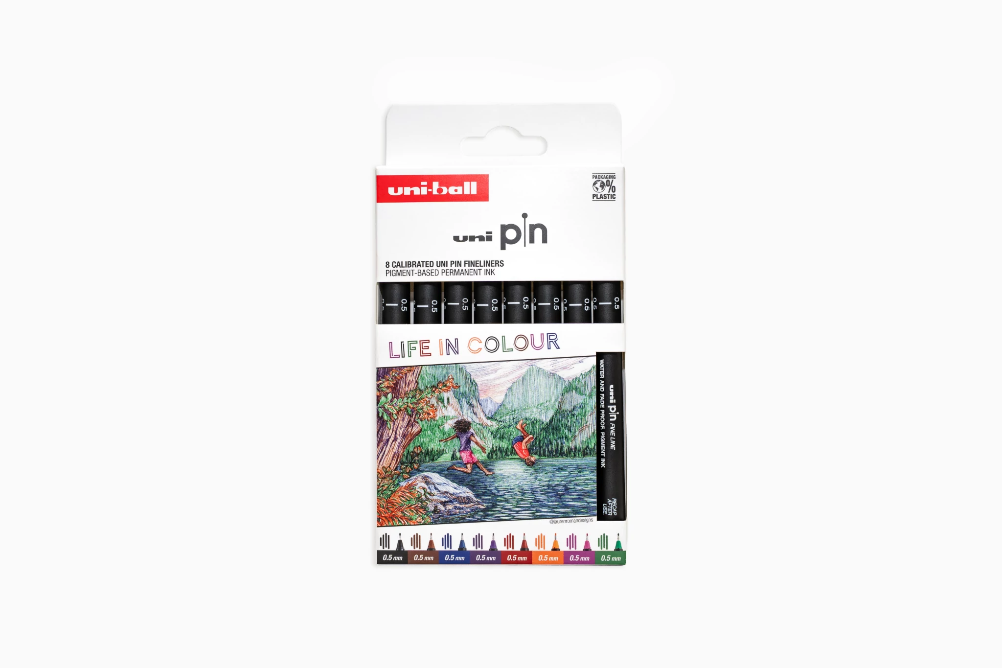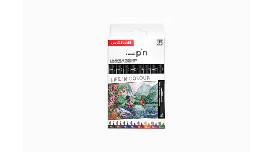 UNI PIN 8 darabos rajzmarker készlet Színek világa ( 0.5 méretben fekete, barna, kék, lila, piros, narancs, rózsaszín és zöld)